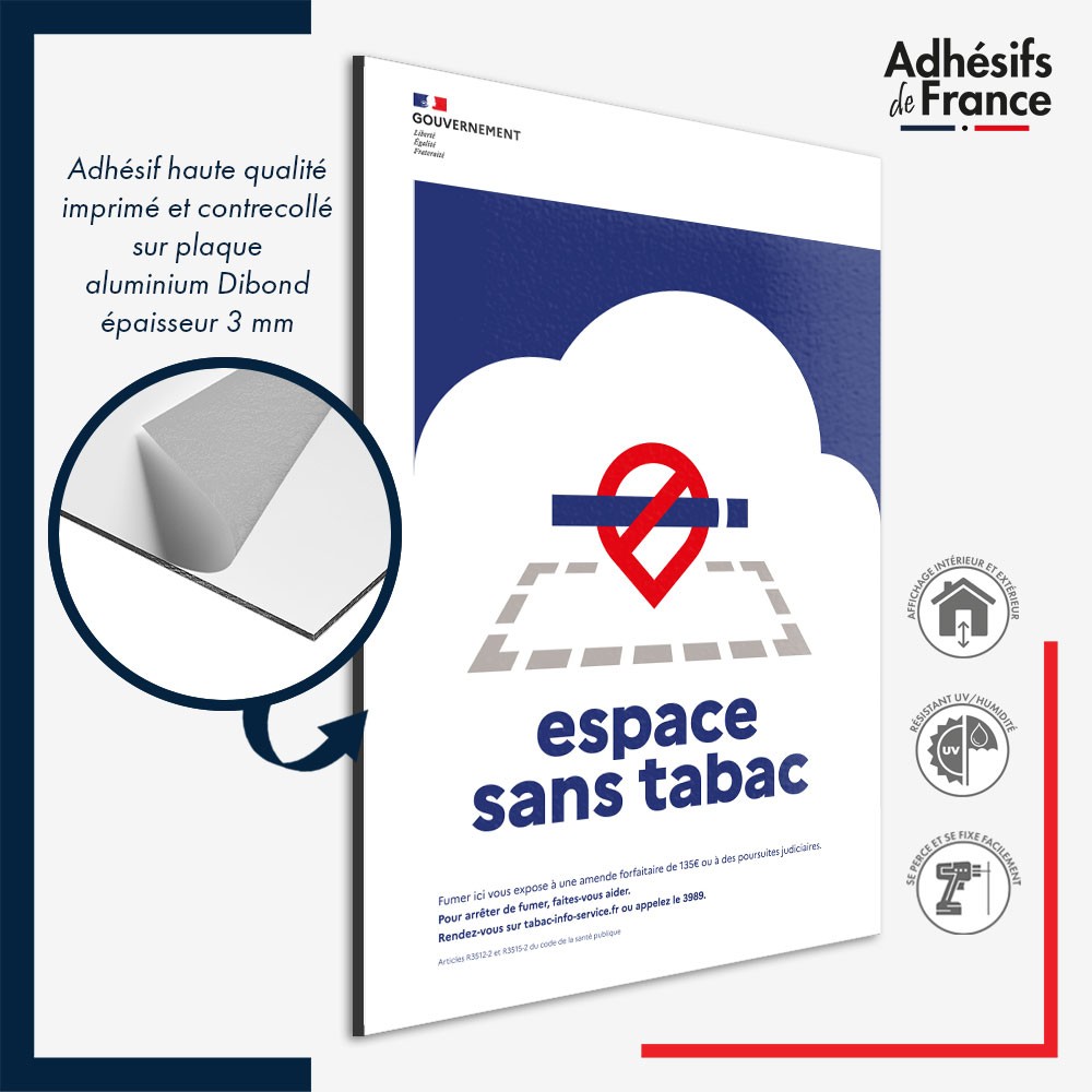Fabriqué en France dans nos ateliers, cette affiche, cet autocollant ou ce panneau est conçu pour s'adapter durablement aux conditions d’utilisation en intérieur comme en extérieur en fonction du supports choisis (panneau aluminium Dibond par exemple pour une installation en extérieur). Son design conforme aux recommandations officielles du Ministère de la Santé garantit votre conformité sans risque d’amende.