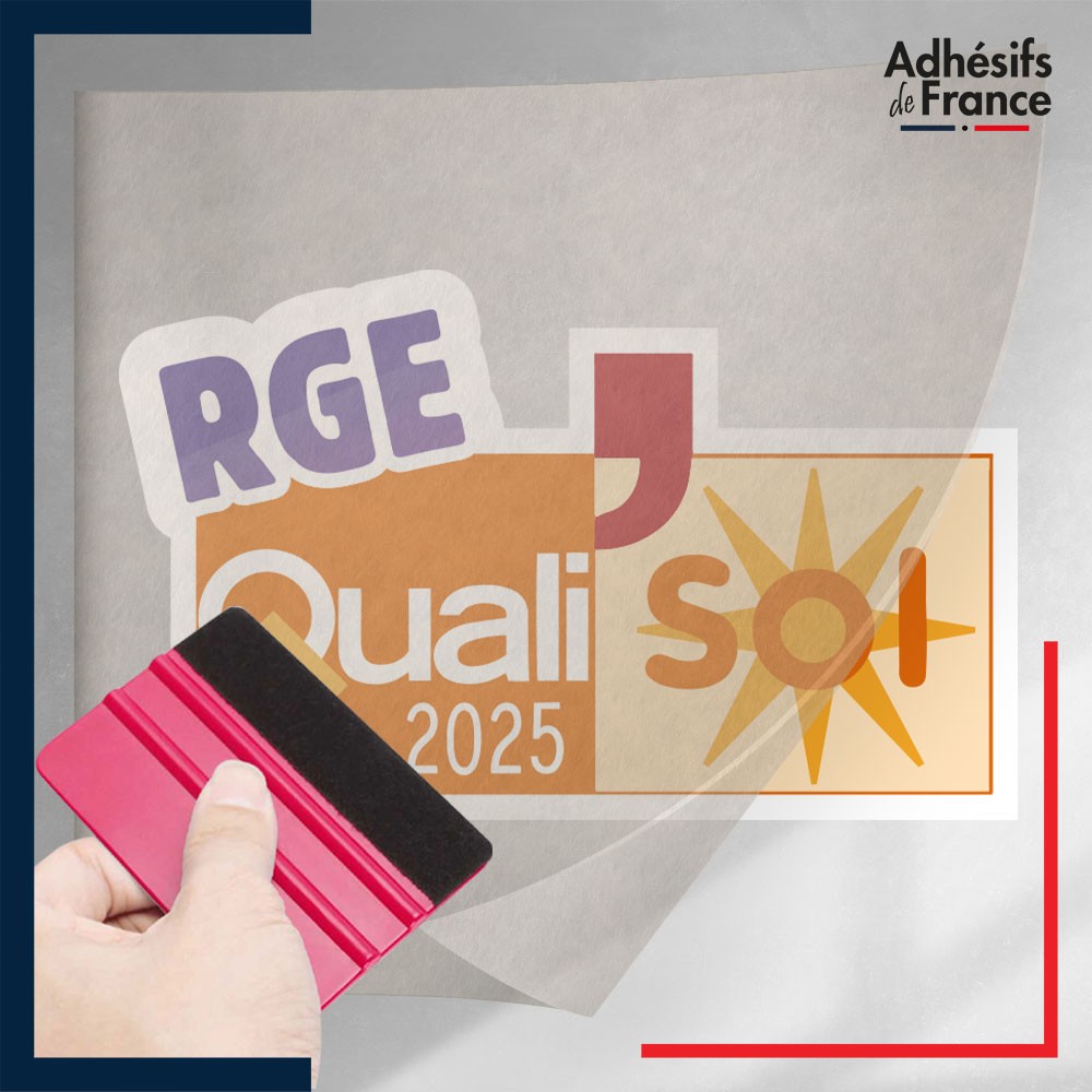 Logo adhésif du label RGE QualiSol, gage de qualité et de fiabilité pour tous les professionnels spécialisés dans l'installation de systèmes solaires thermiques et disposant de cette certification. Cet autocollant est idéal pour communiquer le savoir-faire et le sérieux d'une société labellisée RGE (Reconnu Garant de l'Environnement) et ainsi donner confiance à sa clientèle. Il peut être affiché sur la porte ou la vitre d'un bâtiment ou même sur un véhicule afin de renforcer sa communication professionnelle.